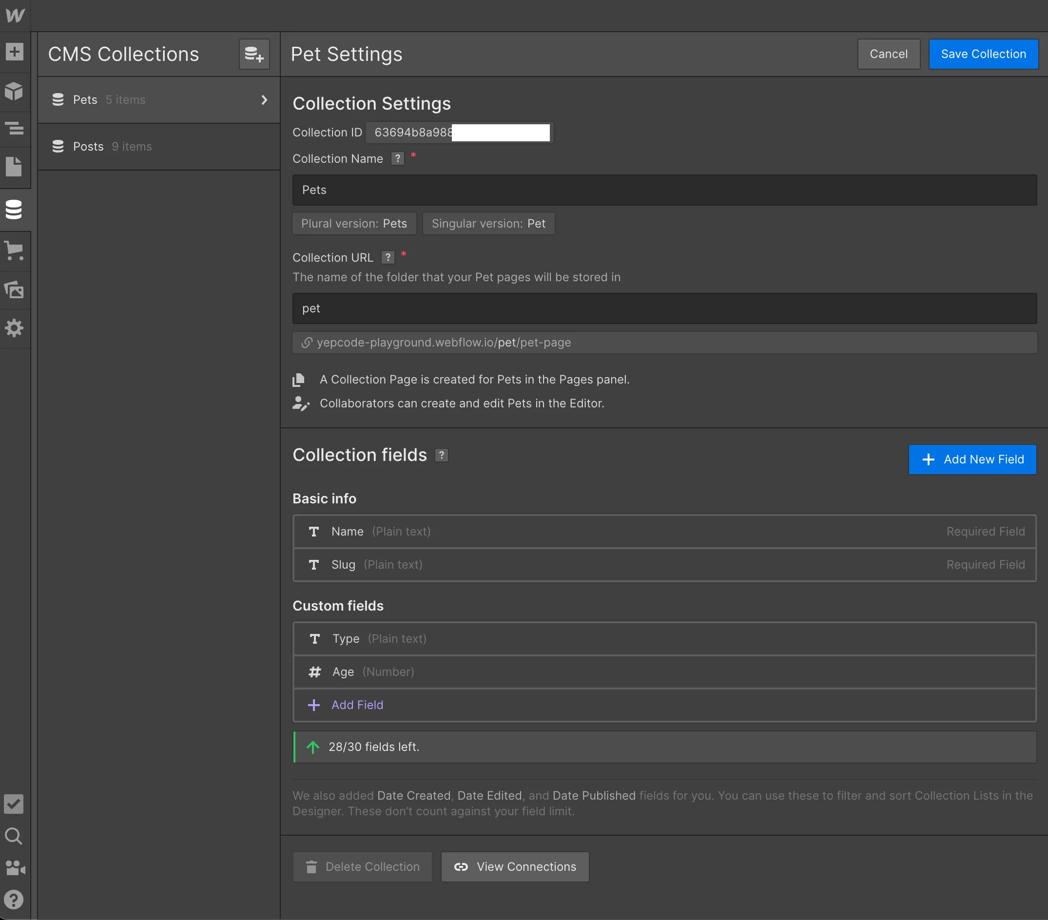 // TODO: Set your CMS collection id (it's available in Collection Settings window)const YOUR_COLLECTION_ID = "6366c9..."