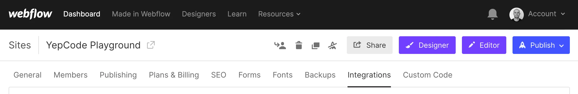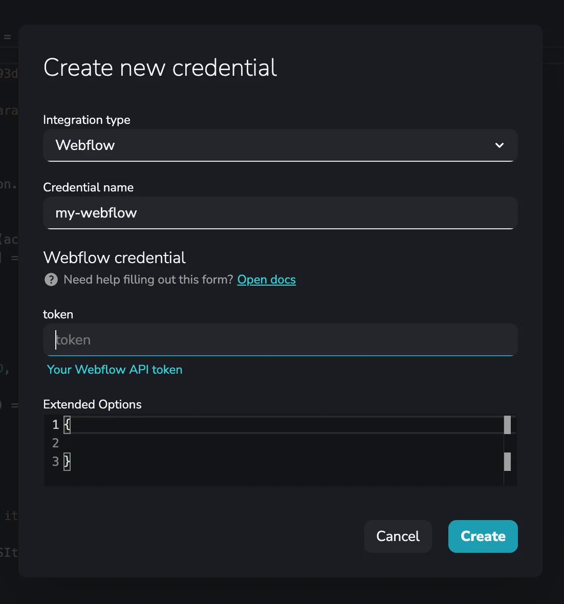 const webflow = yepcode.integration.webflow("my-webflow");Follow this guide to migrate your credentials.
