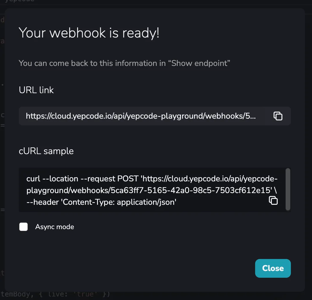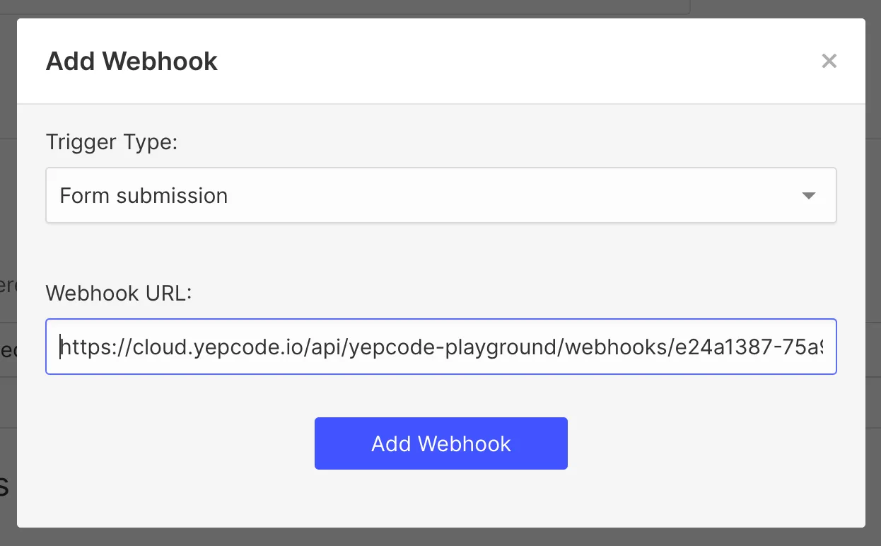 And create a new webhook for each Form submission. The URL to be used should be the one that YepCode provides with the webhook creation.