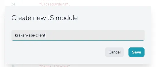We’ll need all the code to interact with Kraken API. We could add all the implementation in this same process. But as it seems a quite reusable component, a better idea is to use the YepCode JS modules feature to create a new module with a Kraken API client implementation.