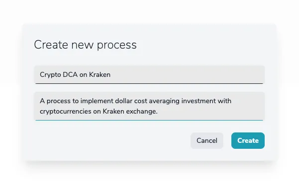 If you want to see a more practical approach to this task, you can see this process in our Sandbox, as it’s fully configured there with the name [Sample] Crypto DCA on Kraken. But if your purpose is to learn how a process can be created in YepCode from scratch, keep reading as we are showing the steps and linking to the related page in our docs.