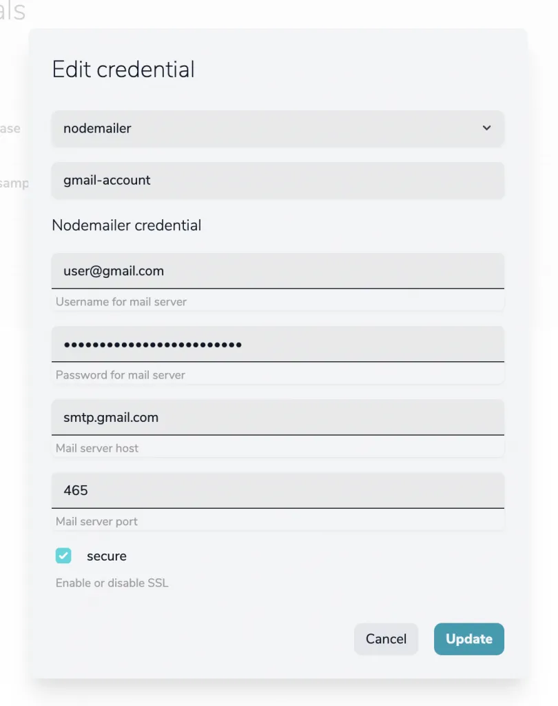 const mailClient = yepcode.integration.nodemailer('gmail-account')Follow this guide to migrate your credentials.